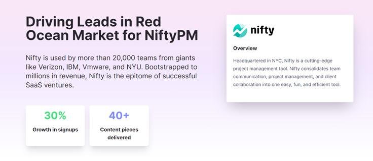 The sign-ups at Nifty increased by more than 30% after they hired an outsourced content writer who generated around fifty detailed articles. The articles used relevant keywords to target the audience.